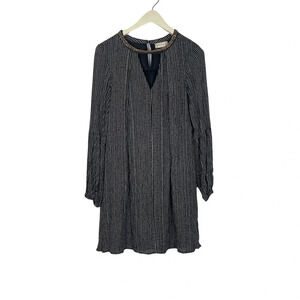 ALTAR'D STATE Black Shift Dress with Gold Beaded Neckline • Size Small • Long Sleeve • Keyhole neckline
