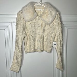 ALTAR'D STATE Button Down Knit Sweater With Faux Fur Collar Size S NWT