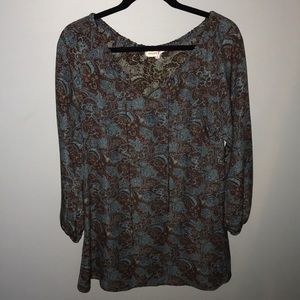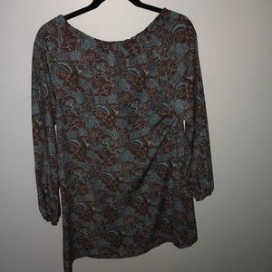 -blue and brown shades; paisley pattern