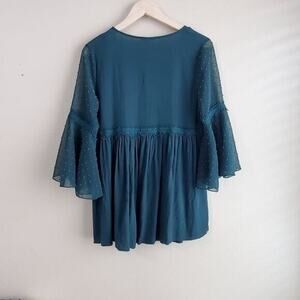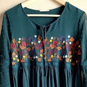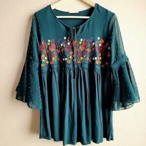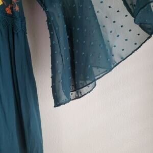 ALTARD STATE Embroidered green flutter sleeve top XS 3/4 sleeve flowy boho