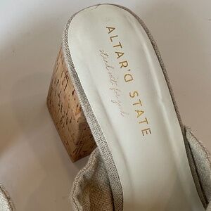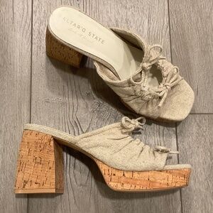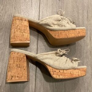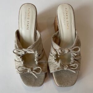 ALTAR’D STATE Estella Bow Cork Platform Heels Khaki Canvas Size 8