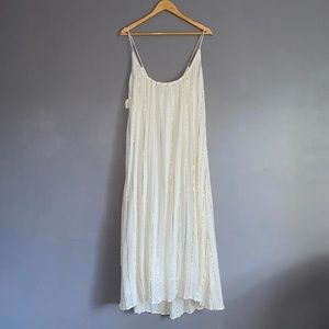 ALTAR'D STATE Ivory Metallic Gold Stripe Flowy Gauze Crinkle Maxi Dress
