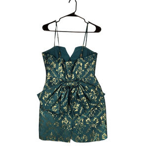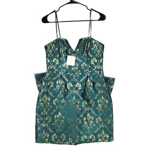 ALTAR'D STATE Womens Hattie Jacquard Mini Cocktail Dress sz M Margolis Teal Gold Metallic Bow