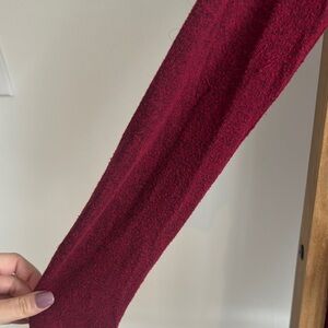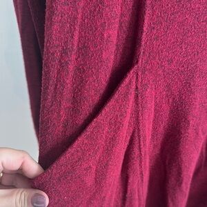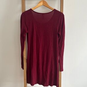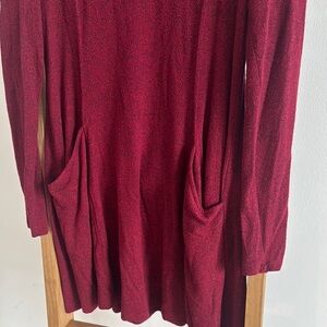 Elegant burgundy dress with long sleeves. Features a scoop neckline and side pockets. Perfect for casual outings.