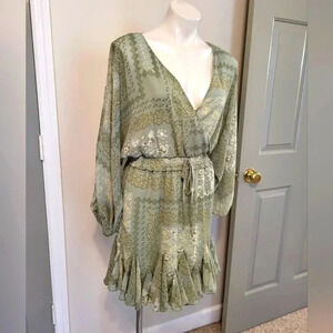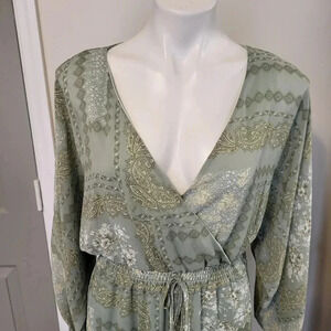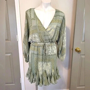 ALTAR'D STATE Sage Paisley Print Wrap Front Olivia Dress(S)