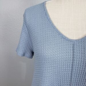 ALTAR'D STATE Waffle Knit Sharkbite Hem Top Light Blue Sz S