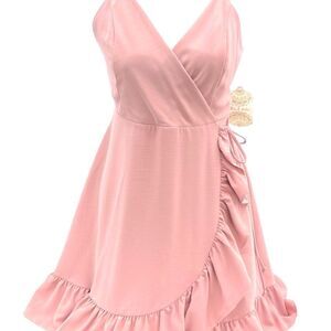 ALTAR'D STATE | Women's Dress Mini Sleeveless Faux Wrap Ruffle L Dusty Rose Pink