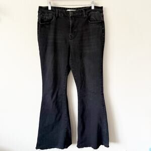 ALTAR'D STATE | Worn Raw Hem Black Wide Flare Denim Stretch Jeans | 32, 14, XL