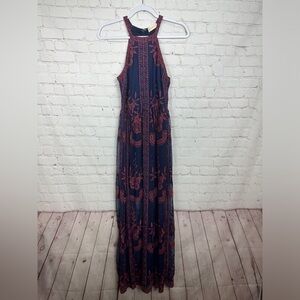 ALTAR’D STATE maxi DRESS Long Navy embroidered sheer halter sz S, GUC beach boho
