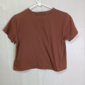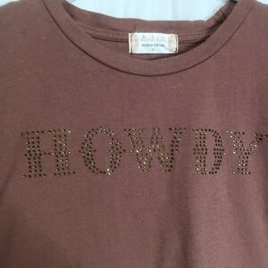 Altar'd State Howdy Embellished Top Shirt Brown Crop Boxy Made in USA Size M