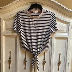 Altar’d State Navy Tan Striped Tie Front T-Shirt