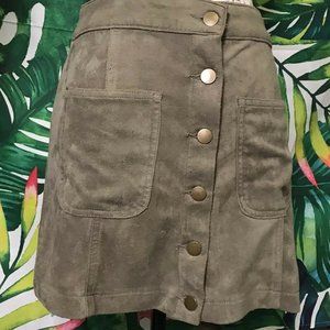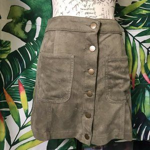 ALTAR’D State Womens XS Olive Green Button Front Faux Suede Skirt