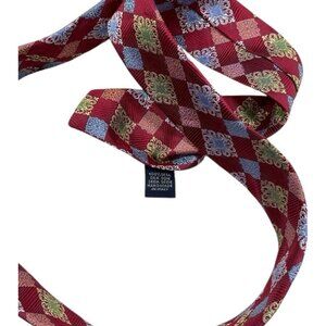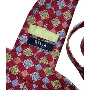 ALTEA Men's 100% Silk Necktie LUXURY XL Burgundy Blue Green Tartan W:3.5" EUC