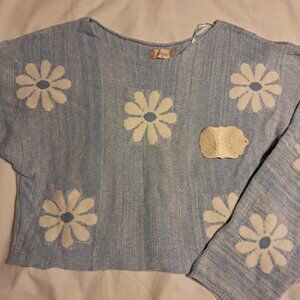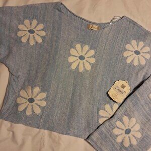 ALTER'D STATE BLUE FLORAL CROPPED SWEATER MEDIUM NWT
