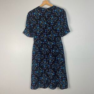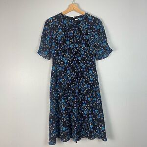 Shirring at the neckline, gently tucked sleeves and a subtly flared hem enhance the easy femininity of a floral frock fashioned from lightweight Italian Fabric.