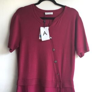 ALTUZARRA Jefferson Dress Burgundy Knit Button Midi
