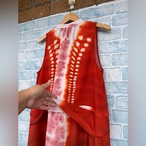 Retail $2295. This layered asymmetric midi-dress boasts gradient coloring and dyed central paneling.