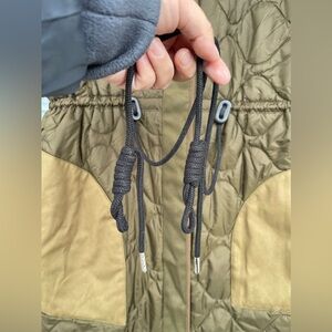 Retail $1699. Khaki green navy blue and cream reversible quilted this coat is in very good condition, it’s just a little dirty on the lighter side need a trip to the dry cleaners and it will be like new . This is the longer version there’s is style like this one but shorter sold out for $1699 , this is a little more than that .