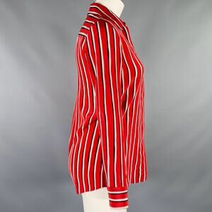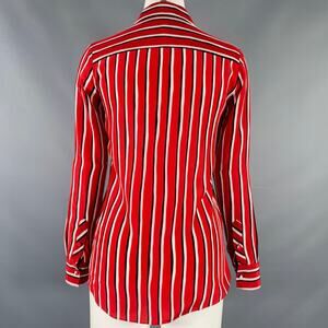 ALTUZARRA Size 0 Red Black White Silk Stripe Hidden Buttons Casual Top