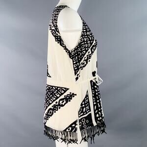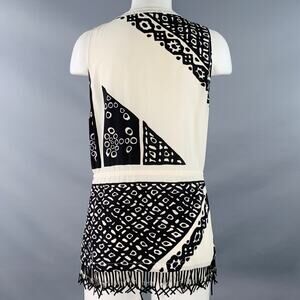 ALTUZARRA Size 6 Black Cream Abstract Sleeveless Fringe Casual Top