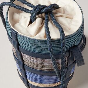 ALTUZARRA Watermill Bucket Bag blue green beige rafia with leather strap