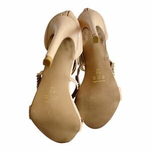 ALVEA Tan Leather Strappy Sandal Chain Stiletto Heels Ankle Strap Zip Closure 8