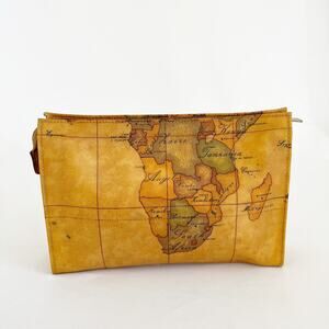 ALVIERO MARTINI Classe Prima Vintage Clutch Map Printed PVC Leather Bag