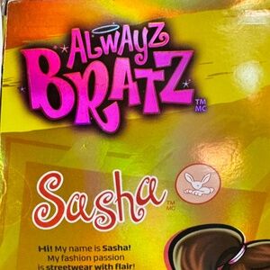 The ALWAYZ BRATZ SASHA FASHION DOLL is a 2023 special edition collector toy featuring a medium-dark complexion African American girl doll with dark brown braided hair. This articulated doll comes with multiple accessories, bendable limbs, and removable clothes. It is part of the ALWAYS BRATZ series by MGA, suitable for ages 6 and up, and themed around fashion and beauty.