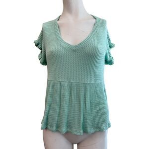 ALYA Ladies Size XS Mint Green Blouse Short Sleeve Top V-Neck Waffle Weave NWT