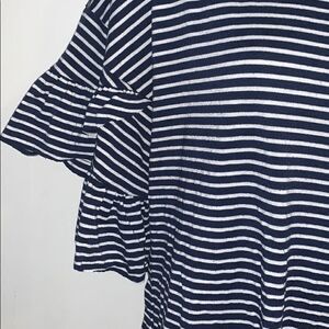ALYA Navy and White Stripe Ruffle Sleeve Top-M