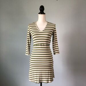 ALYA | Striped Ribbed Dress V-Neck Dress Sz M