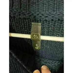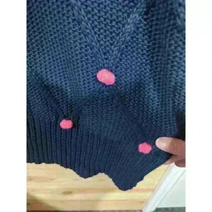 ALYA Womens Crew Neck Sweater Size S Blue Pink Polka Dot Cable Knit long Sleeve