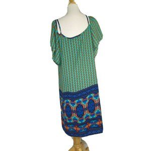 ALYA by Francescas Cold Shoulder Shift Dress Short Sleeve Geometric Womens Large