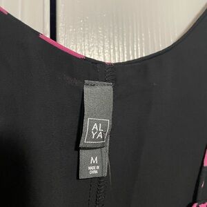This dress is NWT, by ALYA for Francesca’s. It has spaghetti straps, is lined and is a deep, deep navy and pink animal print.