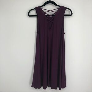 Alya from Francesca’s plum purple ribbed strappy neck sleeveless flare dress. Super soft. Oversized. Size womens Small.