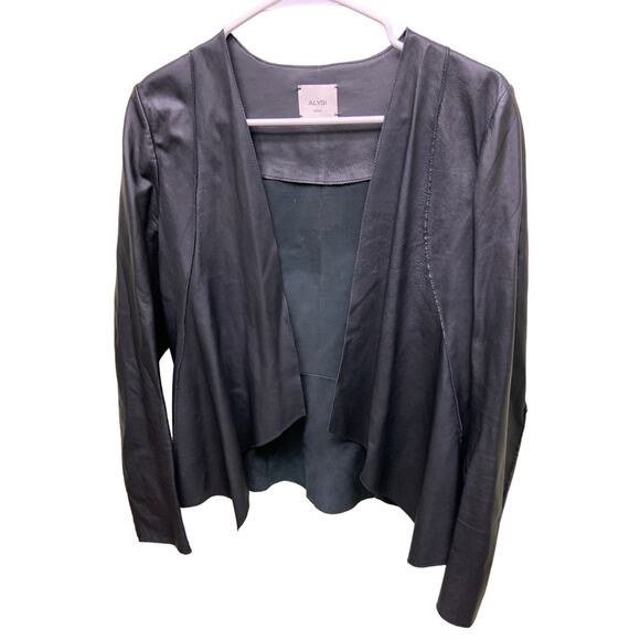 ALYSI Creme 100% Leather Black Blazer Jacket Size 4