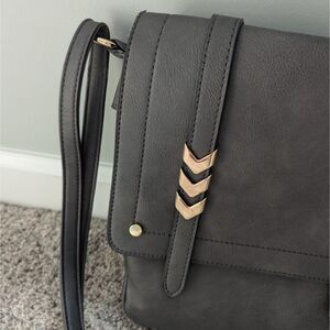 ALYSSA Flapover Crossbody Bag | Charcoal Gray | Faux Leather | Gold Hardware