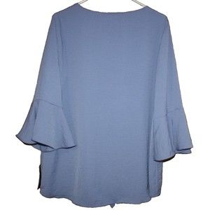 ALYX Women's Flutter Sleeve Overlay Blue Tie Front Blouse Plus Size 0X NWT $54