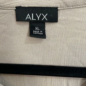 Elevate your wardrobe with the ALYZ beige crinkle material top, a versatile piece that can be dressed up or down for any occasion. The neutral beige color makes it easy to pair with any bottoms, while the relaxed fit ensures all-day comfort. Preowned.