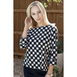 A’La Carte Blouse Women’s Small Button Detail Freyed Polka. Dots 3/4 Sleeve