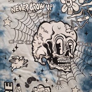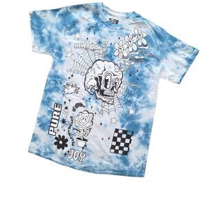 A.LaB Tie Dyed Screen Print Never Grow Up T-Shirt Blue White Medium