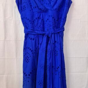 A-Line Dress Women's 4 Cobalt Blue Lace Eyelet Coastal Preppy Feminine Summer