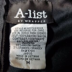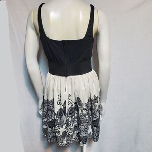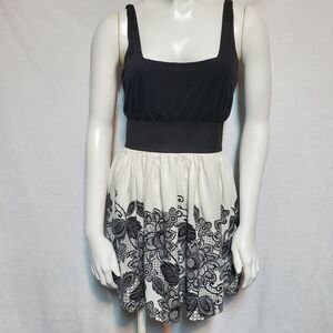 A-List by Wrapper black and white dress with a floral pattern on the skirt.