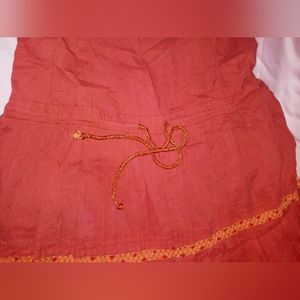 Size large red comfortable A-List dress. Adjustable belt and shoulder strings. Perfect for a party or casual wear! Zipper on back and embroidery on the edges of dress as well.