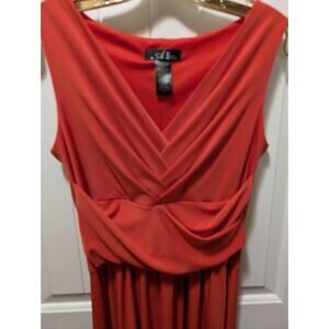 A-List Womens L Orange Coral A-Line V Neck Midi Dress Sleeveless Spring Summer