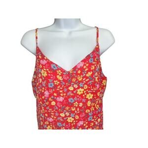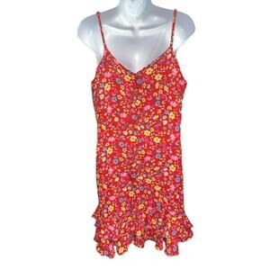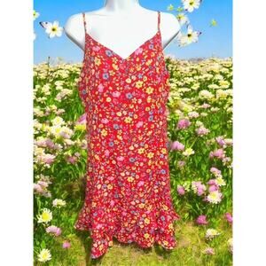 A...Love Story Medium Dress Red Yellow Floral Sundress Ruffles Adjustable Straps