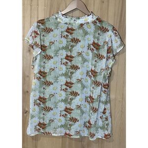 This XL Women's Sheer Blouse by Love Story features a beautiful floral pattern in a vibrant multicolor design. The blouse has a V-neckline, short sleeves with a sheer sleeve type, and a button closure. Made from polyester, this blouse is machine washable and offers a lined interior for added comfort. Perfect for everyday wear, this basic style top is a stylish addition to any woman's wardrobe.