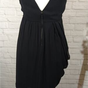 AM Alice + Olivia Designer Black Plunge Neck Silk Wrap Drape Mini Dress NWT S