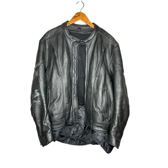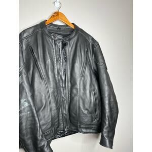 MSRP: $450 AM Leather 100% Leather Black Motorcycle Riding Jacket w/ Pockets Mens Size 46