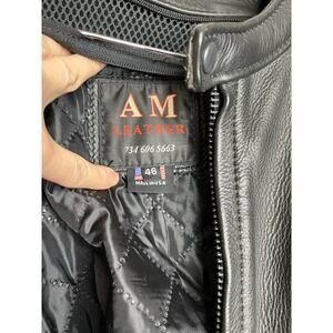 AM Leather 100% Leather Black Motorcycle Riding Jacket w/ Pockets Mens Size 46